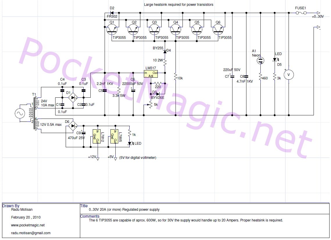 И по наблюдениям на форумах - эту схему все повторили миллион раз. Засада только одна - правильно рассчитать резисторы силовых транзюков.Может соберусь таки и сделаю, не знаю, силовые транзисторы больно дорогие.А вместо микрухи 317 в пластике есть у меня в железе как кт819,двуногие, LM338.Та же 317 , тока чутка мощнее. Но они с алишки, так что не факт,что настоящие.Многие жаловались,что с Али 338 микрухи больше 0.5 А не держат.Но в случае с применением силовых транзисторов пофиг, там хоть кренку ставь 142ен1) -------------------- У кошки 4 ноги - вход,выход,земля и питание