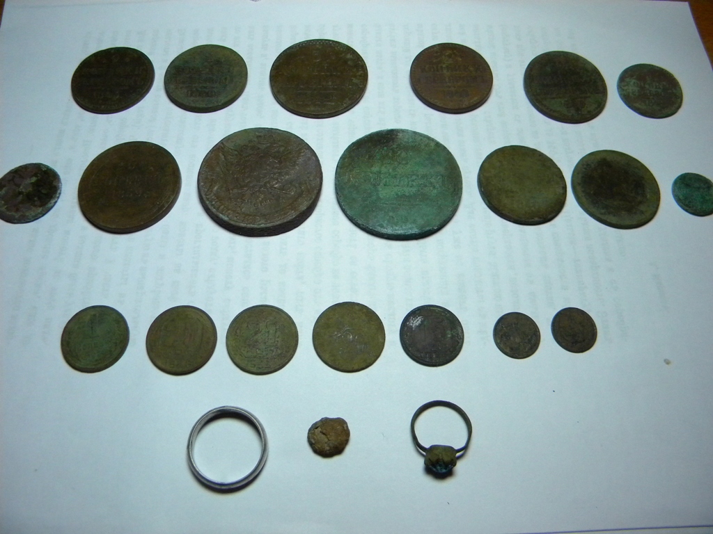 Как найдет время отпишет ощущения... Да, действительно в воскресенье удалось выбраться в лес, находящийся между несколькими деревнями. Это место уже прочесывали ранее вместе с Доном Хуаном с помощью F75 и F75Black со стандартными 11" катушками, но осталось ощущение, что подняли далеко не все. Придя на место, сразу же нацепил на F75(не блек) катушку 15" от По сравнению со штатной конечно намного тяжелее , но через некоторое время привык, к тому же темп махов намного меньше, чем со штатной. Настройки: dE, sen 90, disc 6, noch 1. Никаких ложных сигналов при ударах катушки о траву и ветки, я этим воспользовался и походил по высокой траве и кустам черники и брусники(вес катушки помогает пригибать их к земле Приятно удивили следующие факты: 1) показания VDI точно такие же как и со штатной 2) определить центр цели не составляет труда 3) замечательно цепляет мелочь По поводы глубины поиска сказать ничего определенного пока не могу, т.к. все найденные цели располагались в пределах 12-25 см, только 10 копеек "масоны" ок. 30-35 см. Вот собственно находки за 3 часа поиска: Находки за 3 часа поиска: 10 коп 1837 5 коп Екатерины 5 коп 1859 5 коп Николая II 3 коп серебром 2 коп серебром - 5 шт. копейка серебром деньга 17ХХ денежка Николая I советы 7шт (в том числе 2шт по 1 копейке!!!) кольца 2 шт. Вложенные эскизы изображений -------------------- если я выиграл лот пожалуйста напомните в ЛС