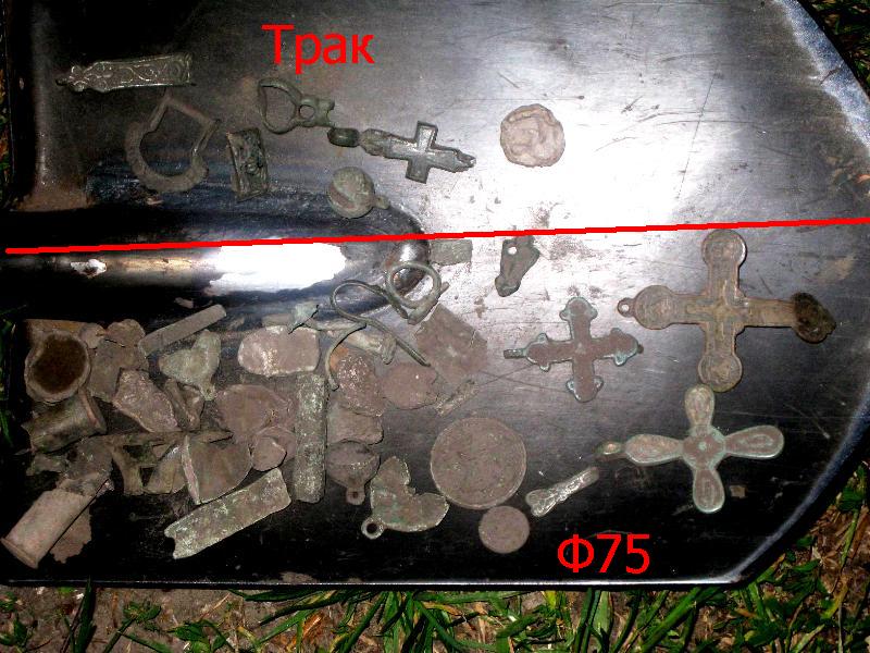 Если допетровское поселение и находки в основном чешуя и крестики-ф75 рулит...а если монеты-трэк...Ф75 и ЛТД на копе одинаково показали себя ...на доп режимах ходить не комфортно ...
