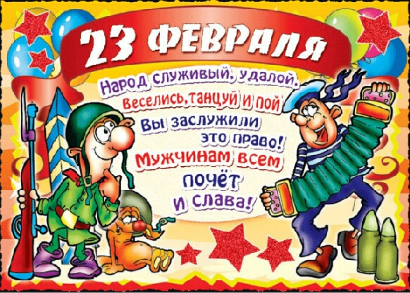 Желаю в День защитника Отечества Здоровья, много сил и долголетия, Чтоб счастливы вы были Двадцать третьего! Пускай всегда желания сбываются, Доходы очень быстро умножаются, Желаю быть отличными мужьями, Отцами и, конечно, сыновьями! -------------------- ♔ ♥ ♔ ♥ ♔