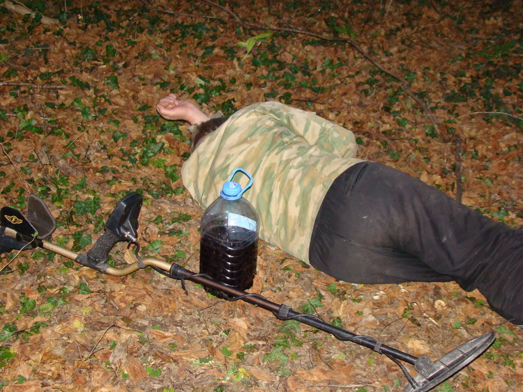 1)Потеряли мы как то своего товарища в лесу, нашли под вечер, вот в таком состоянии, утомился бедняга таскать с собой 5 литров вина