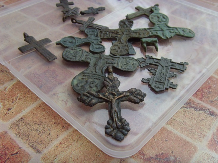 дело было на "Костромских разливах".... помимо КОПа есть ещё и хобби с ружьишком побегать... изучив примерное место лагеря, "затарившись информацией и в свободное от семьи и работы время сопоставляя все за и ну его "на" принялся вычисятьместо.... было примерно установлено место жития священослужителей которое попало в зону подтопления(правда покинуто оно было ещё в конце 17 века...) в первый год увы и ах, выский уровень воды позволил насладиться только видами природы, и комариными "трелями..." в следующем 2008 сезоне удалось в болтниках "дошагать" выстилая перед собой гать до места, проклиная всё и всех на свете... всё было против и погода и местность... но мы не привыкли отступать и земля откупилась от нас ненадолго, наградив за трудный путь я не сомневаюсь что новые артефакты с нетерпением ждут нас, ждут когда снова увидят солнце, примут вертикальное положение, они верят что люди их просто так не оставят! -------------------- Если я у Вас, что-то купил , или Вы что- то хотите предложить, пишите в личку не стесняйтесь. С ув.