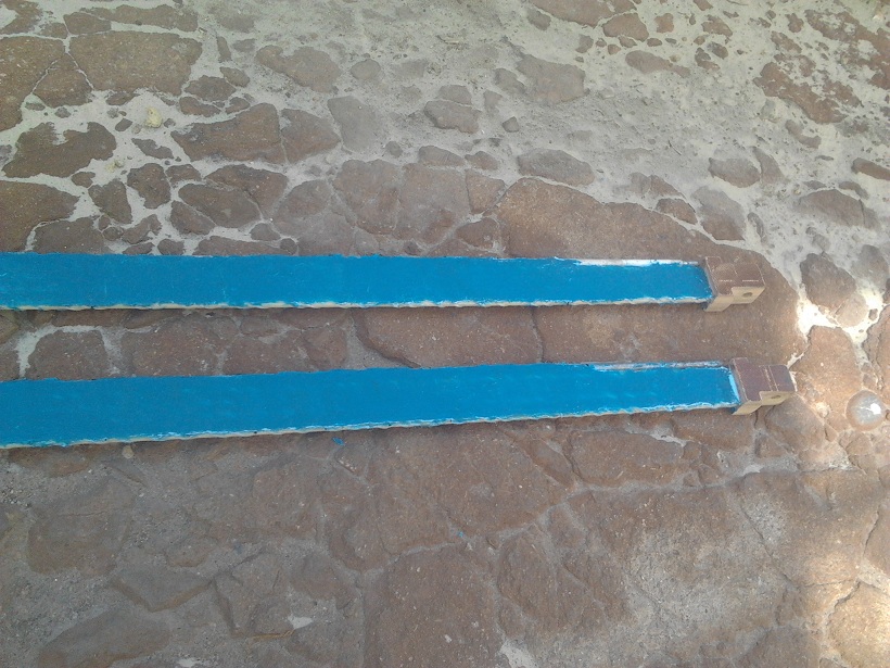 В оригинале эта штанга делается из голых стеклопрутков диаметром 8мм, это просто Евген не нашел таковых, и применил арматурные, с гладкими получается при той же прочности еще миниатюрнее и меньше расход смолы. С торца приклеивается трубка (тонкое колено от удочки) , которое потом распиливается, в результате у плосской штанги появляется с одной из сторон желоб, куда и укладывается кабель катушки.
