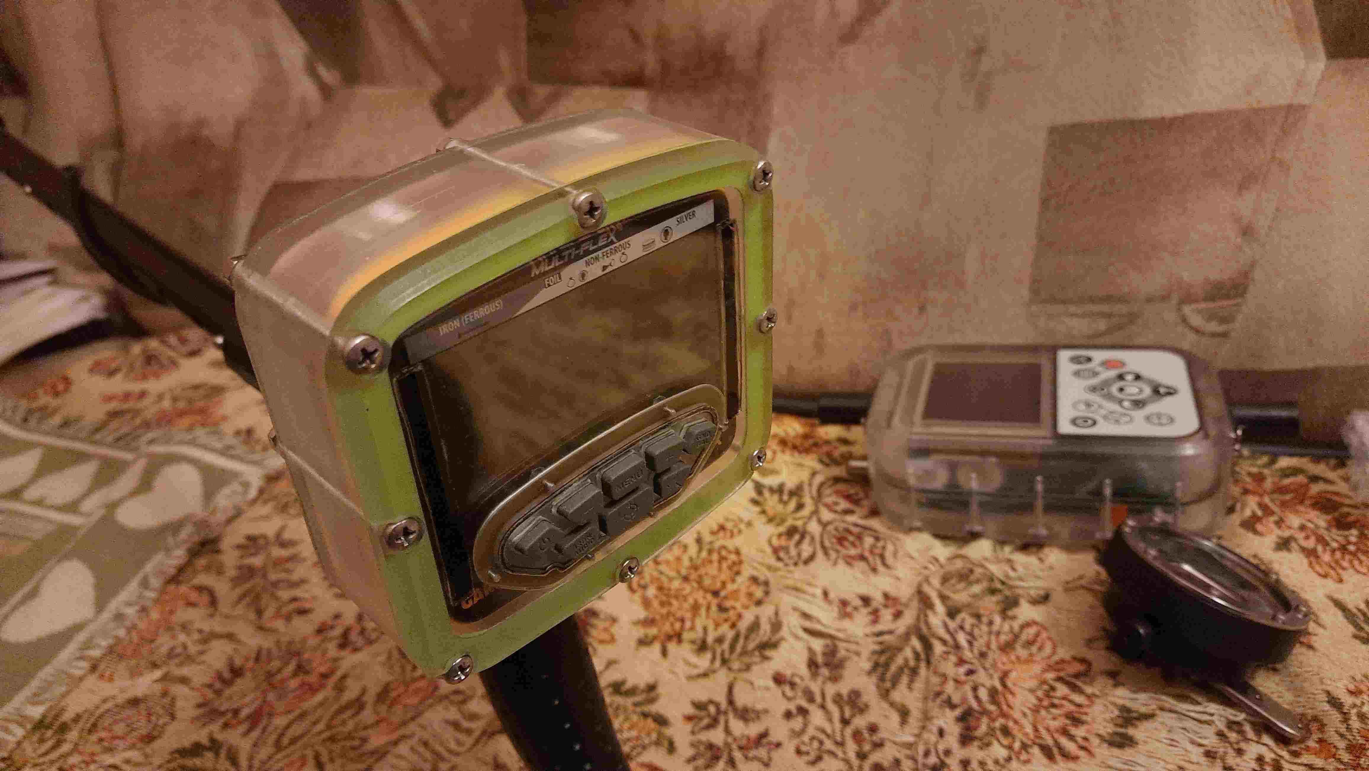 Кабель катушки заведён через фильтр и гермоввод и впаян в плату без разьёма (это повышает стабильность) , разьём M12 8 pin установлен для зарядки, обновления и выход на динамик и наушники (т.е. два выхода разного уровня). Материал поликарбонат: Передняя панель 10мм, средняя вставка корпуса 2х15мм и задняя крышка 12мм. Остальное нержавейка и анодированная латунь. В корпусе установлен дополнительный экран из 2мм фольгированного текстолита. Если необходимо можно установить большой аккумулятор , место с запасом. Глубина погружения 10м.