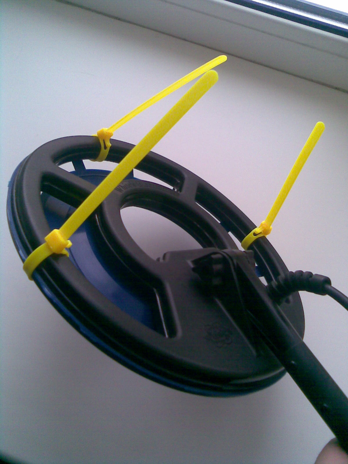 а вот простейшая детская игрушка - летающая тарелка, цена - 28 руб. идеально, даже без хомутов держится на катушке whites prizm 5G. где-то на даче была тарелка старого образца - полностью закрытая, без дырочек,весной попробую её, если подойдёт,то будет еще лучший вариант.