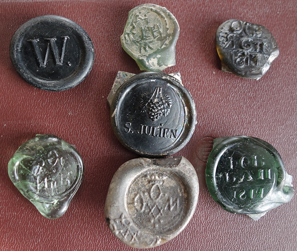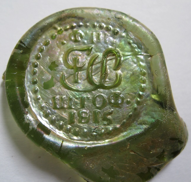 Во время очередного весеннего похода на Ширятинский стекольный завод,как и ранее,целых бутылок найдено небыло.А вот колотые и клейма-оттиски от них были.Самый бОльший - штоф 1815 - диаметр 21мм,полу 1818 - диаметр20мм,полу (без года)-диаметр16мм. Бут.. 18.. - к сожалению расколота. Были и просто чистые,всё см. на фото.