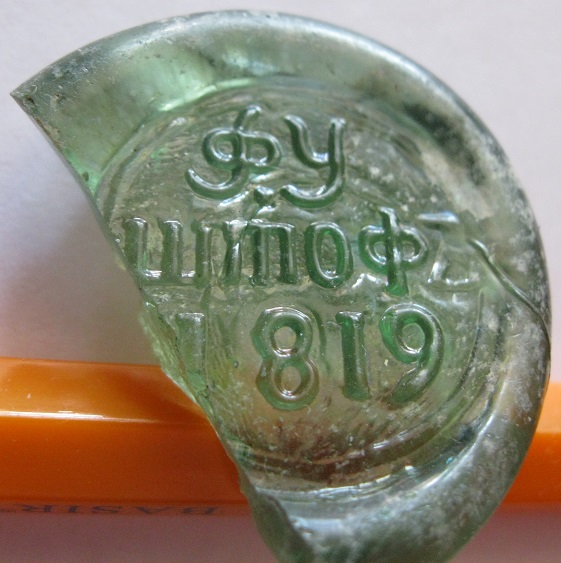 QUOTE(паяльник @ Jul 30 2018, 22:42) Всем,добрый вечер. Очередная находка с Ширятинской стекольной фабрики. Можно предположить,что и в начале века,до 1812 года фабрика работала,если ЕФ - это Ермолинская фабрика.Ермолино более крупный населённый пункт,село,находится в полутора - двух километрах от местонахождения фабрики.Ещё бы разгадать,кто это АМБ? ![]() Находка великолепная. Такие клейма есть в количестве, не только Е.Ф., но и М.Ф. Что означает - неизвестно, как и то, имеют ли отношение к Ширятинской фабрике. Но если привязка найдётся, это решит вопросы с целым комплексом клейм разных десятилетий. Огромнейшее вам спасибо |