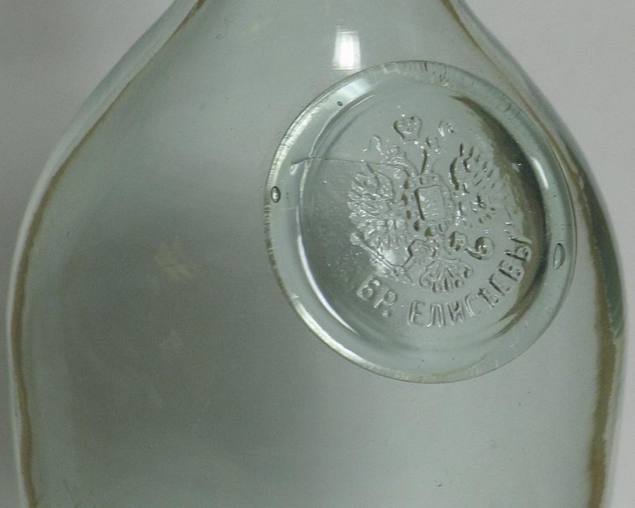 В центре Ельца есть одно место, я его назвал "Кладбищем штофов"... Так вот там, при строительных работах, было найдено большое количество битых штофов, я предполагаю, что десятки тысяч... Те, что были с датировками 1851-1859 годов, Комисарова и Безбородова в основном... Клеймо попалось только одно - "Сотерн". Также были битые бутылки "Херес" с изображённым парусным колёсным пароходом...
