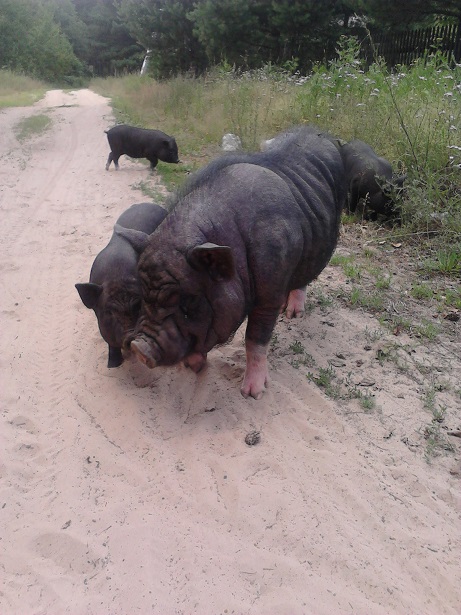 QUOTE(voleras @ Mar 2 2016, 17:26) По осени закупил 5 свиноматок и боровка вьетнамских вислобрюхих. (проживаю в сельской месности, вся эта магазинская типа колбаса и подобное достало) К весне усиленно готовлю место для птицы, думаю штук 50 птицы и штук 40 поросят не помешают в моем подворье. Фото и все дальнейшее действие добросовестно выкину в данной ветке. А пока, скромно промолчу, но надеюсь, что все получится. Ведь я упорный Дай бог Вам и вашим питомцам здоровья. Ездили летом к родственникам погостить. Слышу но улице шум гам, ребятишки бегут и кричат там кабаны в кустах, перепугались. Иду туда, кругом покопки, характерный запах мочи..... и никого, ну думаю свинья с выводком совсем оборзела в деревню средь бела дня вышла. Чуть позже наблюдаю такую картину катит по дороге вот такая банда. Оказалось на базе у Москвичей живут, надоела им загородка они и смылись на вольные хлеба, прибежал егерь с базы, как их не загонял ни манил не пошли обратно, вот он дух свободы! Вложенные эскизы изображений -------------------- Лучше летом у костра, чем зимой на солнце.