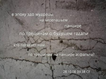 QUOTE Душистой перловкой. Наполнится рот беззубого парня. Цинга. Выпали зубы? Гадалка вчера предсказала, Что выпадет счастье ! ... Самурай в черном кимано: Вал перемахнув Скользнула тень в тумане Рассвет уж.. Банзай ! Три катаны у горла В строчке, где имя его Крупная сумма! |