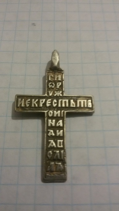 Приветствую камрады, вот такой крестик попался, чешуя Грозного в князьях ранние и уже в царях и еще как-то "немножко". Хорошо походили, с местным Александровским парнем встретился на поле, а он даже нашего сайта не знает, 9 лет ходит, сдружились, 2 дня вместе ездили с ним. Место хорошее нашли, выбили как смогли, он со своим Беркутом меня общеголял. Но камрад выдвинул версию рязанский тип 17-18 век. Вязь уникальная у него, типа того, не знаю...