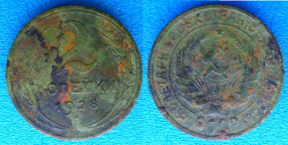 уважаемые подскажите. попалась такая монетка первый раз выкапываю с такой патиной как у медной. всёвремя попадаются чистые желтячки , ну или чуть в окислах, а эта как медная. подскажите мож с ней чего не так? на фото видно цвет патины но в живую ещё зеленей как малахитовая. подскажите может она быть медной или нет?