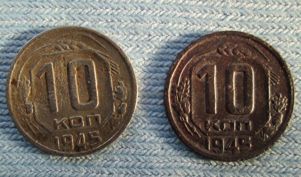 Здравствуйте дорогие форумчане, может кто и подскажет про эти 10и копеечных монет, а то я сам так и не понял. По Федорину левая по дубовым листям подходит к 85му А Ф-63 но по растановке номиналов, к 86му Б Ф-64, а правая наоборот по листьям и по номиналу. И еще по цифре 5 по дате, как понять про просвет?