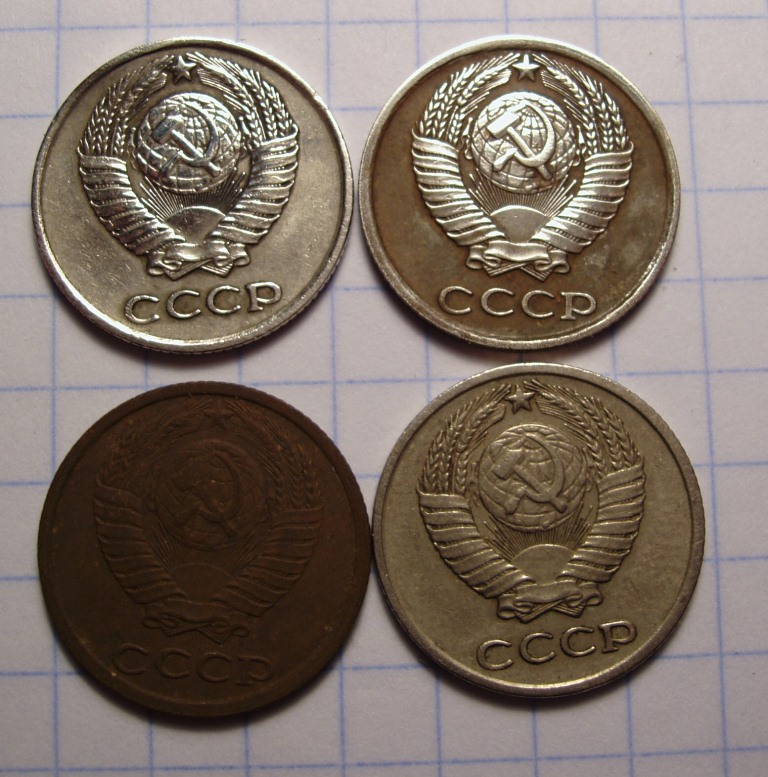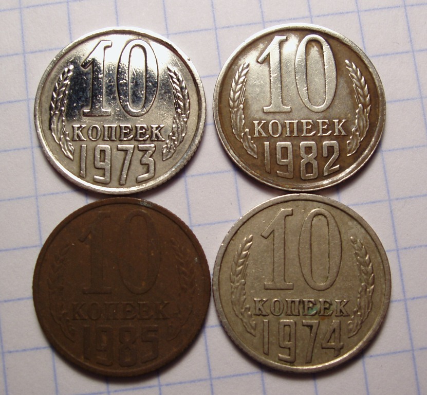 Подскажите пож.что с монетами ,нашел в банке совковой мелочи. Возможна ли была чеканка в Совке на 2копеечной заготовке... 10коп-73 (для сравнения)и 82 были отполированны и натерты зуб. пастой,по другому82 год не чистился.В живую он все равно желтый. Изначально 82 был такой же как 85. 74 так для наглядности ,не чишен.... Вложенные эскизы изображений |