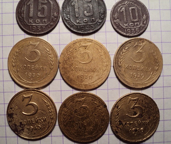 Копейку 37 г. можно посмотреть покрупнее,15к43 тоже,если на ней состояние позволит,что-то разглядеть Ну,и 3к46,это уж совсем на всякий случай.Остальные,или простые,или мёртвые совсем... |
