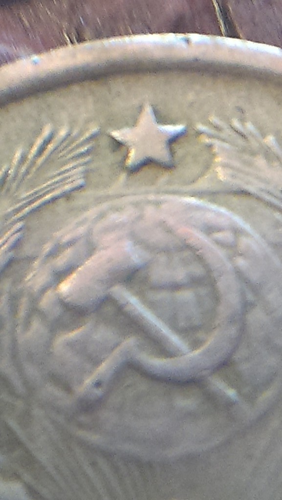 Господа ! Помогите оценить денежку . Фото какие есть , лучше не получится (телефон и лупа) Имеется брак , выпуклая полоса под звездой , отдельный вопрос - это хорошо или плохо ? Заранее спасибо ! Вложенные эскизы изображений -------------------- С уважением С.