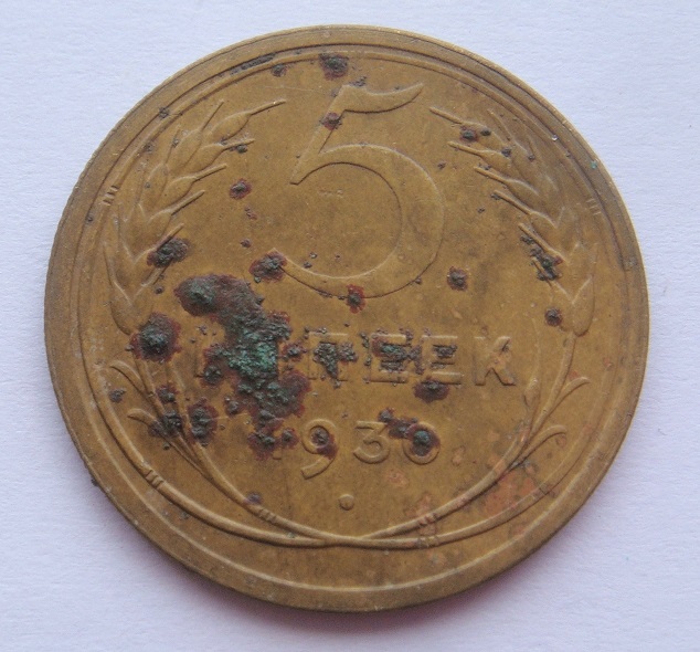 QUOTE(koparr @ Apr 20 2015, 13:18) В не умытом состоянии, фото к сожалению не делал, ибо даже не знал что это за монета такая. Нашел ее в старом доме в земле (видимо когда-то упала между половиц) в больших наростах, которые не смог счистить зубной щеткой даже после 4-х часового отмокания в воде. Потом, после варки царской меди, решил закинуть и этот какалик в оставшийся бульон, с мыслью о том, что хуже ей уже не будет! Но варка тоже не сильно помогла в борьбе с наростами, только прибавилась краснота и монетос попал в нашатырь, а потом и в силит!!!! Грязь счистилась, пятна остались( |
