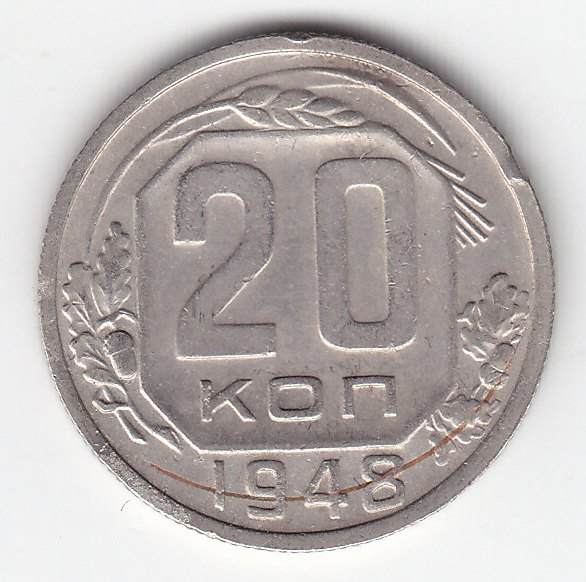QUOTE(ionmix @ Jan 31 2012, 15:43) 20 копеек 1948 г. такой брак чтонибудь стоит.? Это механическое повреждение, не брак. |