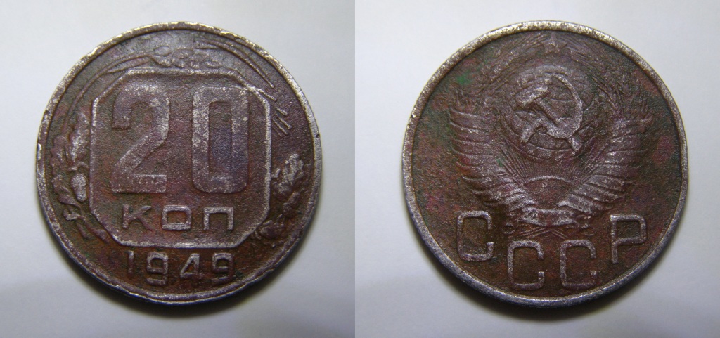QUOTE(Одинтакой @ Nov 2 2015, 23:30) Господа, помогите с оценкой, а также будет ли интерес? По двадцатке, как понял - разновид. шт. 2А, редкая или частая? Двушки - обе лечебная медь 20 копеек 1949 года разновидность определили правильно - не едкая, но и не очень частая монета, но ввиду плохой сохранности дай Бог, ежели рублей 200 кто даст |