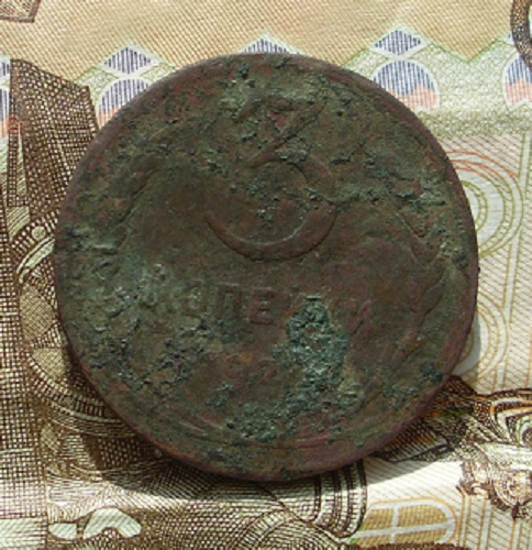 День добрый!Прошу помощи в оценке 3 копейки 1924г гурт рубчатый в данном состоянии.Монета чистке не подвергалась.Планируется продажа. Для сравнения фото с 3 коп 1916г.Монета слегка вдавлена в центре (на фото видно).