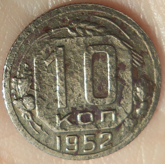 Лучше гурт 1942 покажите и расскажите историю появления монеты у Вас,гривенник редкий...а 1952 году цена пять копеек даже в более приличном сохране и уж его то точно подделывать никто не будет