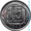 Спасибо. Вот ещё гляньте 15 коп 1943 года вроде шт. 2В. Шт.2 — в левом срезе 5, а в правом 4 стебля, вторые колосья с внутренней стороны с остями.