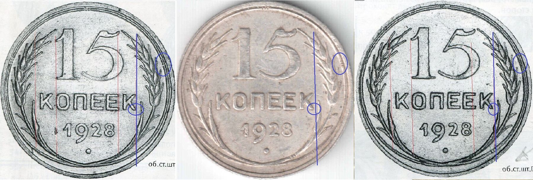 QUOTE(Виталий_Петербург @ Mar 1 2012, 09:52) jikas, на аверсе от 3-х копеек звезда разрезная, на 20-ках плоская. Также снизу слева у звезды на 3 семь остей, а на 20 шесть. Всё верно.Только звезда бывает непрочеканена,ости на копаной монете не всегда и сосчитаешь.Мелких отличий очень много,это же другой штемпель. Отметил, кроме звезды,ещё несколько признаков,которые могут помочь различить эти штемпели. Вложенные эскизы изображений |