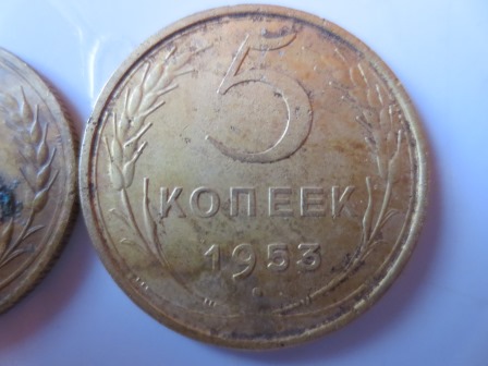 Еще раз доброго.Вот порылся,еще монетка 5к 1953г.Она вроде без прорези?. С уваж.