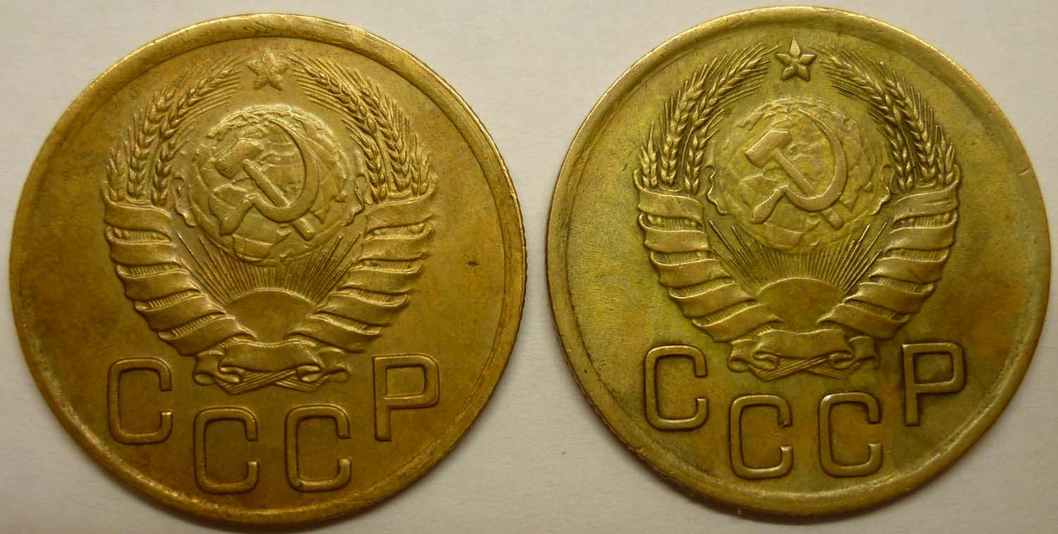 Вроде как получилось... Представляю на Ваш суд фото двух пар 3-х копеечных монет 1938 и 1950 г.г., найденных в своей куче "советов". Прошу выслушать мои "комментарии", а так же определить редкость и оценить. Фото 1938 г. "Смутило" отсутствие узлов на реверсе у монеты справа и разные(?) звезды на аверсе. Вложенные эскизы изображений -------------------- Карта СБ 4276***1822