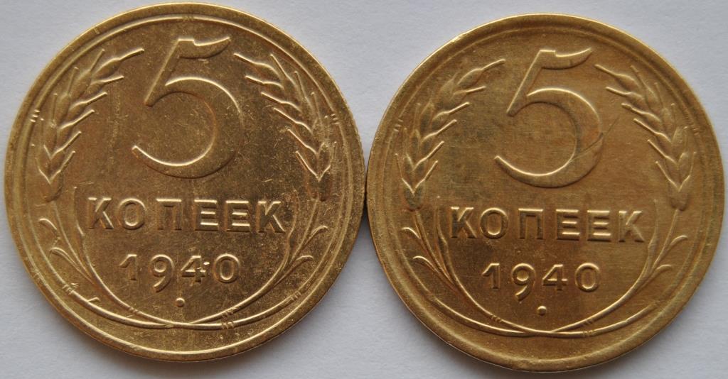 Уважаемые господа, прошу оценить в ден. эквиваленте разно виды монеты 5 коп 1940 г. Спасибо.