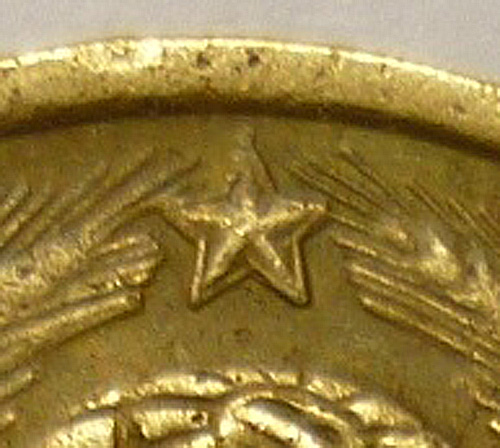 QUOTE(ALSORO @ Mar 25 2012, 19:10) Добрый вечер, уважаемые профессионалы! Попалась единственная двушка 1948г., других нет - сравнить не с чем. Такую окантованную звездочку над гербом - не встречал ни на одной монете из имеющихся у себя "советов". Попытался разобраться сам по каталогу А.И. Федорина. Вроде выходит: Л.ст.шт. Ф-70. Поправьте, пожалуйста, если ошибся. Частая или нет? И стоимость, в таком сохране, хотелось бы узнать... С уважением. Незнаю как у Федорина, но у Адрианова эта монетка является самой частой из 1948 года. Цена в сохране 30 рублей. Сообщение отредактировано Чпокер: Mar 25 2012, 18:22 -------------------- От имени Чпокер.