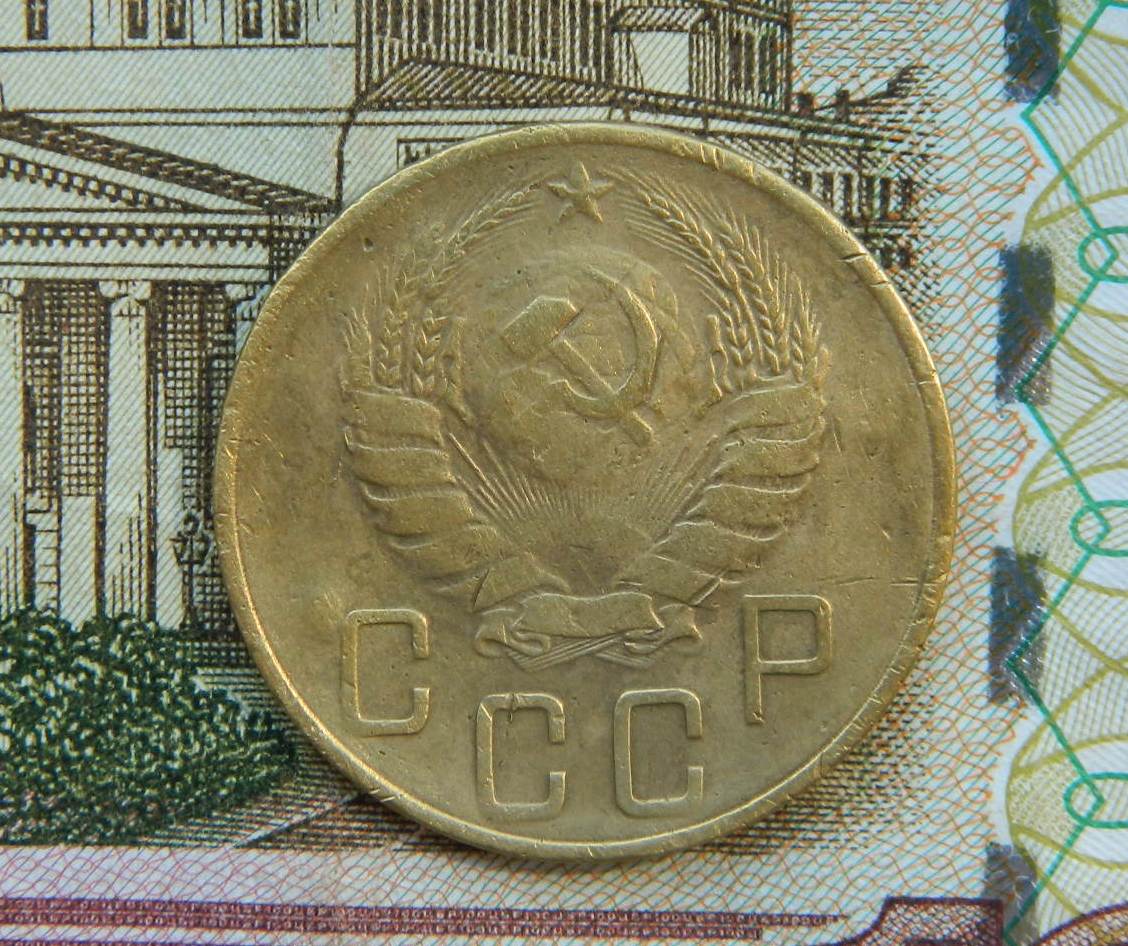 QUOTE(Chernilevskiy @ Jun 18 2016, 23:10) Вот такая ещё есть. Скажите, эта редкая? Это она, с плоской звездой? Это проверка на вшивость что-ли??? Оборотка от предыдущей монеты, а лицевик точно не от трёшки 1949 года |