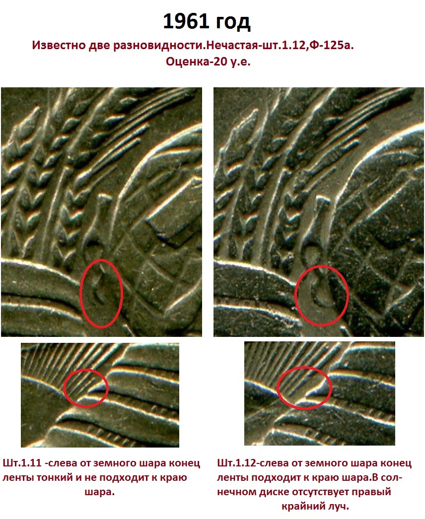 QUOTE(mamont @ May 3 2012, 13:49) Посмотри сам по каталогу Федорина вот тут есть онлайн http://coins-ussr.at.ua/index/onlajn_katalog_fedorina/0-59 Отличный совет!Единственное,чем могу дополнить,это разновидностью Ф-125а по 61-му году,её нет во втором издании каталога.Признаки на картинке.И по ценам,если что-то попадётся нечастое,нужно будет уточнить,они во втором издании устарели сильно. Удачи! Вложенные эскизы изображений |