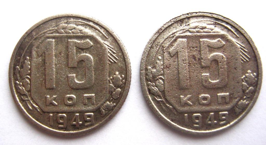 Уважаемые профи ! Интересуюсь по цене двух монет-15 копеек 1949 г., разных штемпелей, по моему определению шт. 2 и шт. 3.1 . Думаю выставить на аук. обе вместе.