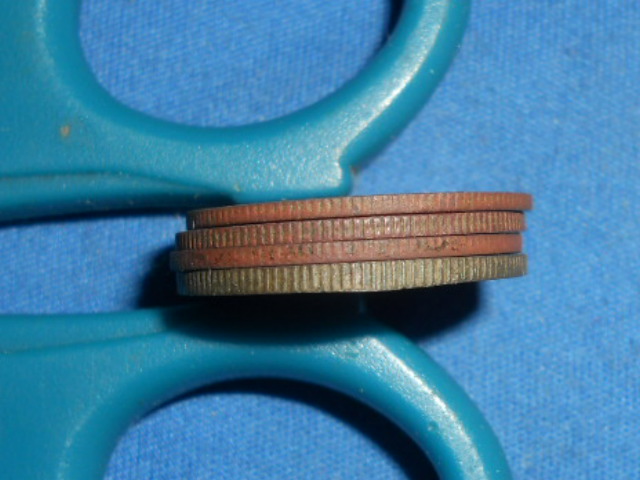 Вес монеты 3,84 гр. При том, что монета, практически вдвое толще своих собратьев. На фото нескольких гуртов она нижняя. И ещё, по гурту выше середины, идёт черта. Отделяющая треть гурта, от других двух третьих. Цвет монеты, сложно сравнивать с каким-то металлом. Но в одном месте, проступает жёлтый. По фото, трудно передать настоящий цвет. Больше похож на хаки или машинного масла. Вложенные эскизы изображений |