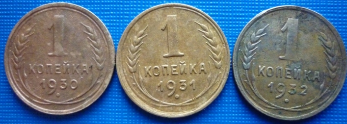Добрый вечер, Всем! Уважаемые знатоки, хотелось бы узнать стоимость 3-х монет 1 коп. 1930г. 1931г. 1932г. Монеты не чищены, просто помыты водой. Будет ли интерес на аукционе? Спасибо.