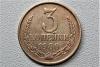 3 копейки 1980 года, - поверхность витков ленты уплощена, у левого первого от земного шара колоса, с внутренней стороны пять остей, между вторым колосом и стеблем третьего колоса, из под ленты выходит ость.
