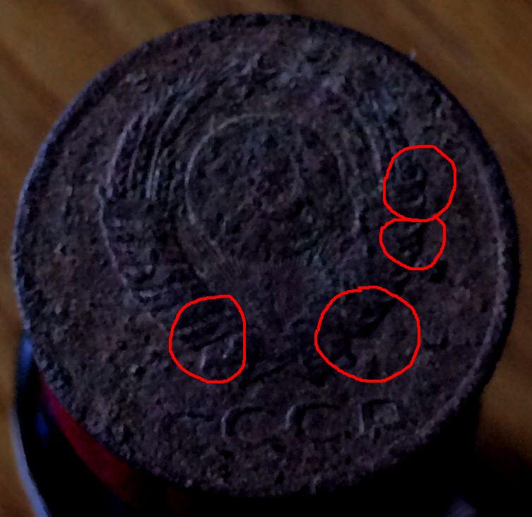QUOTE(hook @ May 27 2017, 15:34) на мой взгляд нормальная в плане подлинности треха 58 года. если что,они в обращение-то попали,поэтому наряду с 10 коп могут и под лопату влететь. состояние кошмарное,ее уже не отчистить. лучше вообще не трогать,хуже будет. по цене думаю не больше 5000 р. дырку кому заткнуть в альбоме. Не сомневаюсь, что монета вполне могла быть найдена в поле - это-ж не пробники, но... Фото конечно дрянь, поэтому пришлось немного поработать с фоторедактором... Выделил красным места, свободные от коррозии: ленты видятся сильно, а не слабо вогнутыми... Чего не может быть в принципе на подлинной, а не перерезанной монете... Сообщение отредактировано Kornous: May 27 2017, 15:03 |