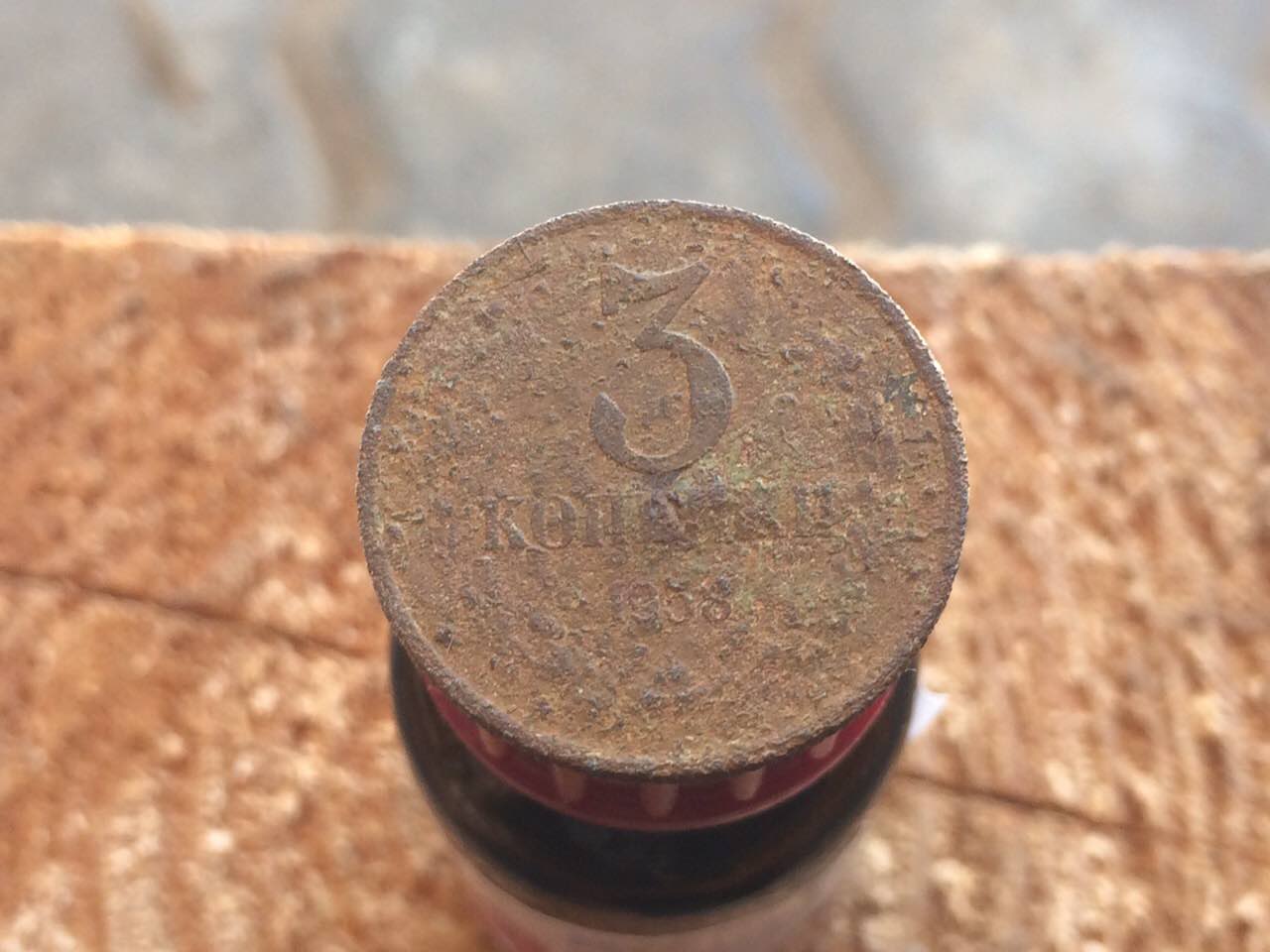 на мой взгляд нормальная в плане подлинности треха 58 года. если что,они в обращение-то попали,поэтому наряду с 10 коп могут и под лопату влететь. состояние кошмарное,ее уже не отчистить. лучше вообще не трогать,хуже будет.