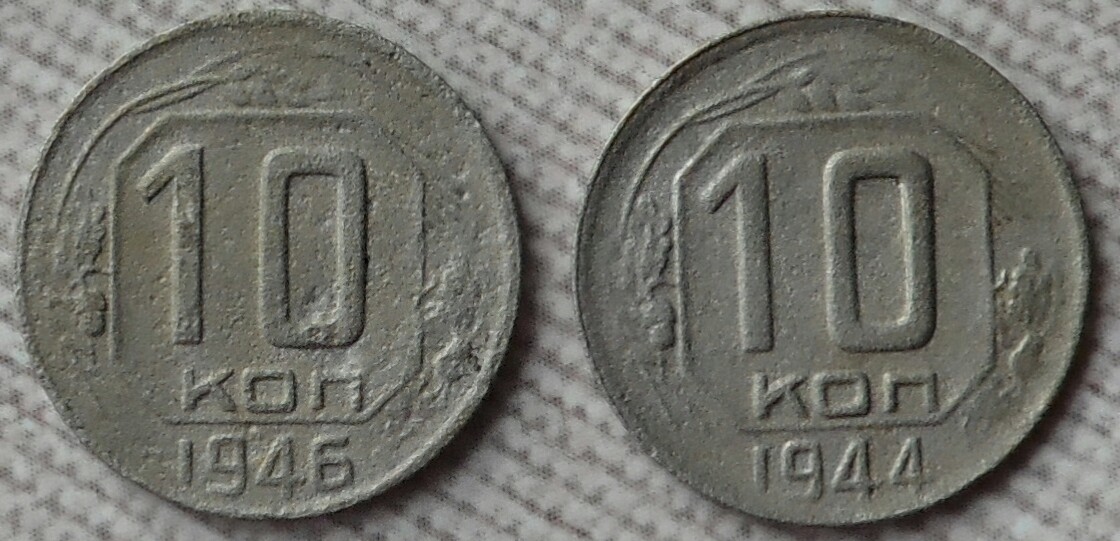 Доброго времени! Подскажите по спросу и возможной цене данных монет в таком сохране?10 коп 1944 и 1946. Зарание спасибо и с уважением