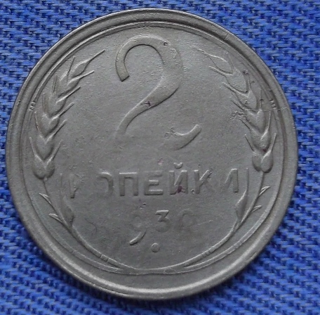И двухкопеечник 1930 года..Сначала показалось,что затёрт..А при детальном обозрении поверхности,после лёгкой чистки..закрались сомнения;по поводу непрочекана обеих сторон и гурта..Я-не спец..просто-предположил..