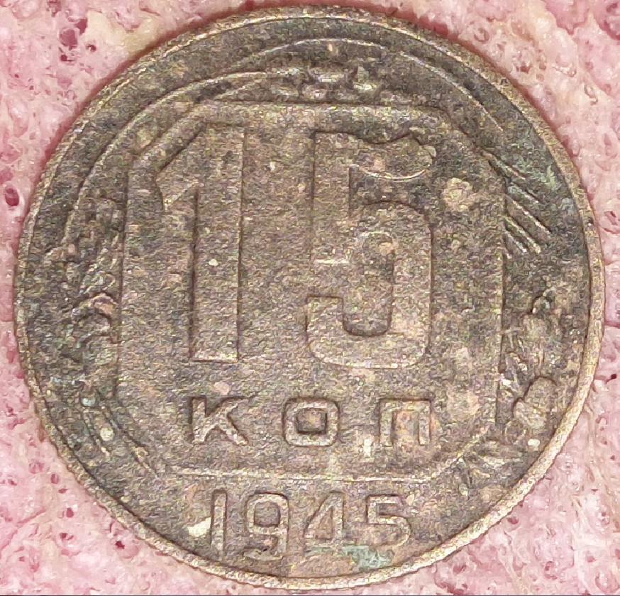 QUOTE(chipsettt @ Oct 16 2017, 22:35) 15 коп 1945 Прошу прощения за фото, но монета была в очень сильных окислах, это отчистил немного и прошу помощи в определении, если это возможно, их три разновидности, насколько я понял. Есть ли смысл ее чистить дальше. Спасибо. простой вариант - смысла чистить нет -------------------- Шиза косит наши ряды