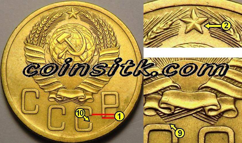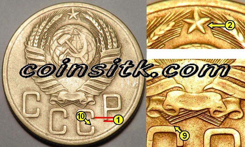 QUOTE(ПЦЫЦ @ Nov 14 2017, 20:36) Спасибо.Но по каким признакам? Есть пара 3.32,одна из них в гораздо худшем состоянии,но на обеих отчётливо видна просечка на рукояти серпа.На этой монете при достаточно хорошо сохранившемся рельефе на прорезь нет и намёка. См. на срез третьей "С" в "СССР"(10) и на кривизну третьего снизу стебля в левом срезе стеблей(9) слева 3.32, справа 3.31 Сообщение отредактировано Шурло: Nov 14 2017, 20:49 Вложенные эскизы изображений -------------------- Шиза косит наши ряды