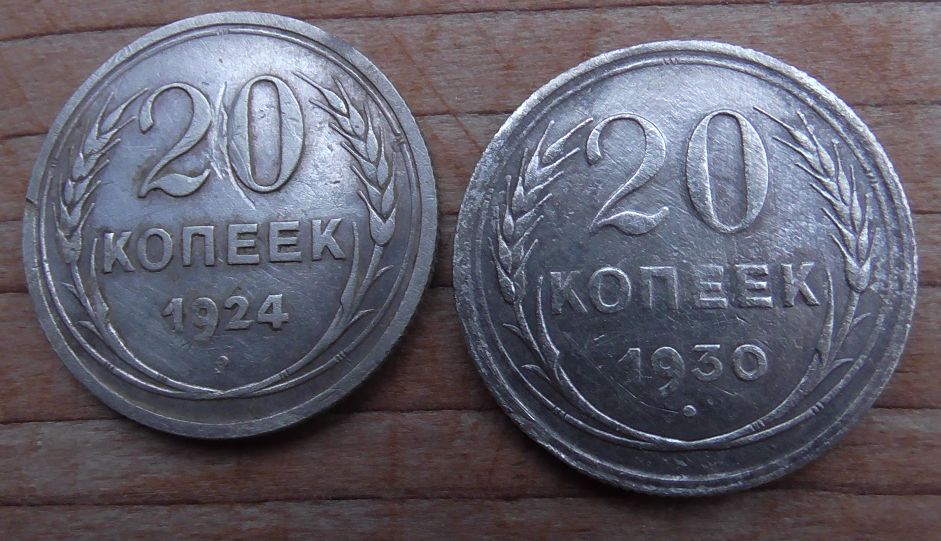 Добрый день.Подскажите пожалуйста .Дело в том,что речь шла о какихто перепутках.Имеют ли к ним отношения данные две монеты 20коп.1924г.и 20коп.1930г.Сколько могут стоить эти две монеты?