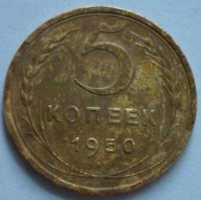Приветствую, Всех! Уважаемые форумчане, подскажите по штемпелю 5 копеек 1950г. Мне больше видится шт. 5.50.1.2 Ф-61 так ли это? Или диск солнца без венчика? Монета не чистилась, сохран вроде неплохой.