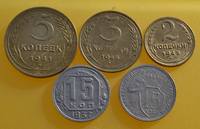 Фото,конечно,не совсем удачные,но в 15 коп.1944 года узрел шт.1.1,450-500 рублей за неё бы дал.Другие монеты не рассматривал.