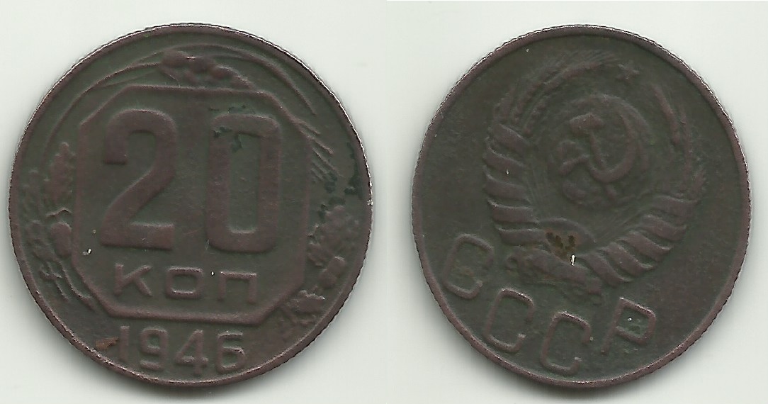 Доброго времени суток. 20 коп.1946 года.Прошу помочь в определении. Монета похоже перепутка по металлу. Я сомневаюсь. Нужна помощь в проверке. Чем можно проверить монету, чтобы не испортить её. Или можно специалисту сразу определить.За ранее благодарю.Вес 3,35 г. Фото принтером.