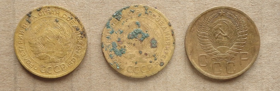 QUOTE(faustaz @ Apr 18 2019, 14:29) Спасибо еще раз voin. Добавлю при дневном, на закат пришлось удалять объектив. ![]() ![]() Федорино горе. Имеется виду вот эта разновидность или требуется помыть монету: Разновидность определяется деталями аверса и реверса. Сетка земного шара прорисована нечётко (особенно в центральной нижней части), внутренняя сторона серпа и ручка молота сливаются друг с другом. На каждом стебле колосьев под датой по два участка со штрихами. Обозначение по каталогам: Ф: аверс - шт. 1.1 (Ф-1), реверс - шт. А Ф-3. Степень редкости: 2-3. И еще один вопрос, "в таком состоянии" - это по школе какие буквы? Я все по Орде, а там в основном серебро, нет градации, на глаз. Ещё раз,здравствуйте!Данная разновидность монеты (шт.1.1 А) сейчас отнюдь не редкая,Ваша монета копаная,рельеф и сохранность хорошие,для продажи лучше убрать грязь,возможно,ещё рублей 200 сверху накинут,но не более того,так как этих монет находят великое множество. -------------------- Тяжело в учении,легко в бою.