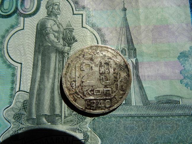 Здравствуйте. 20 копеек 1940 года. Монета слегка помята. Прошу помощи в оценке. Спасибо.