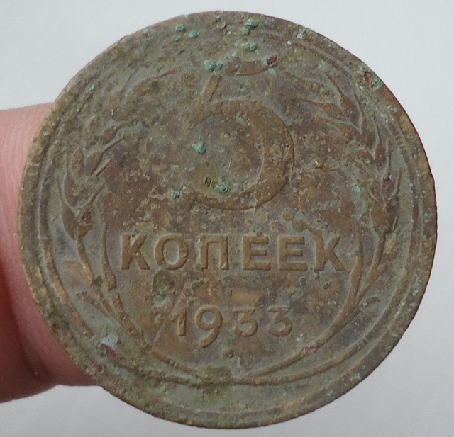 Добрый день, форумчане! Вчера нашёл редкий 5-к 1933 года. Монету не чистил, как только нашёл, положил в баночку с дистилированной водой.Прошу Вас ответить на следующие вопросы:1) за сколько данную монету можно продать на ревью; 2) стоит-ли её чистить; 3) если чистить, то каким методом. За квалифицированные ответы + в репутацию.